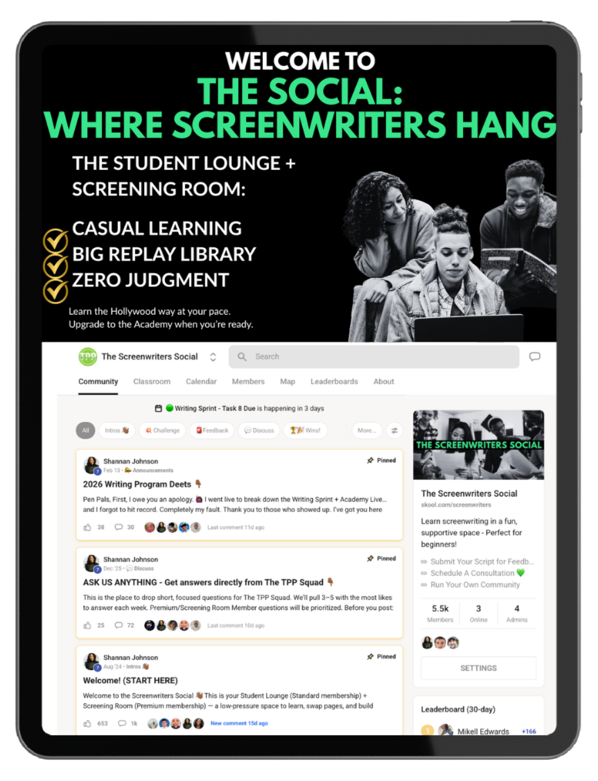 Join The Social to meet like-minded creatives on the journey to a professional screenwriting career.